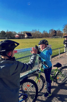 Kurz vor den Osterferien absolviert das 4. Schuljahr noch die Radfahrprüfung. Auf dem Schulhof wurde im Vorhinein fleißig geübt. Herr Falkenhagen von der Polizei Duderstadt konnte somit bei allen Prüflingen guten Gewissens die Radfahrprüfung abnehmen: Alle bestanden! Herzlichen Glückwunsch liebe Vierties.